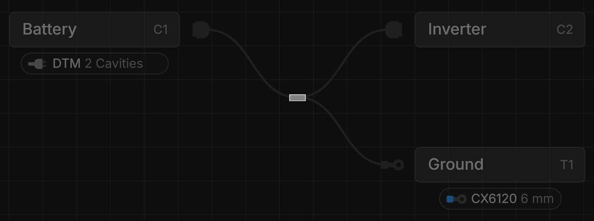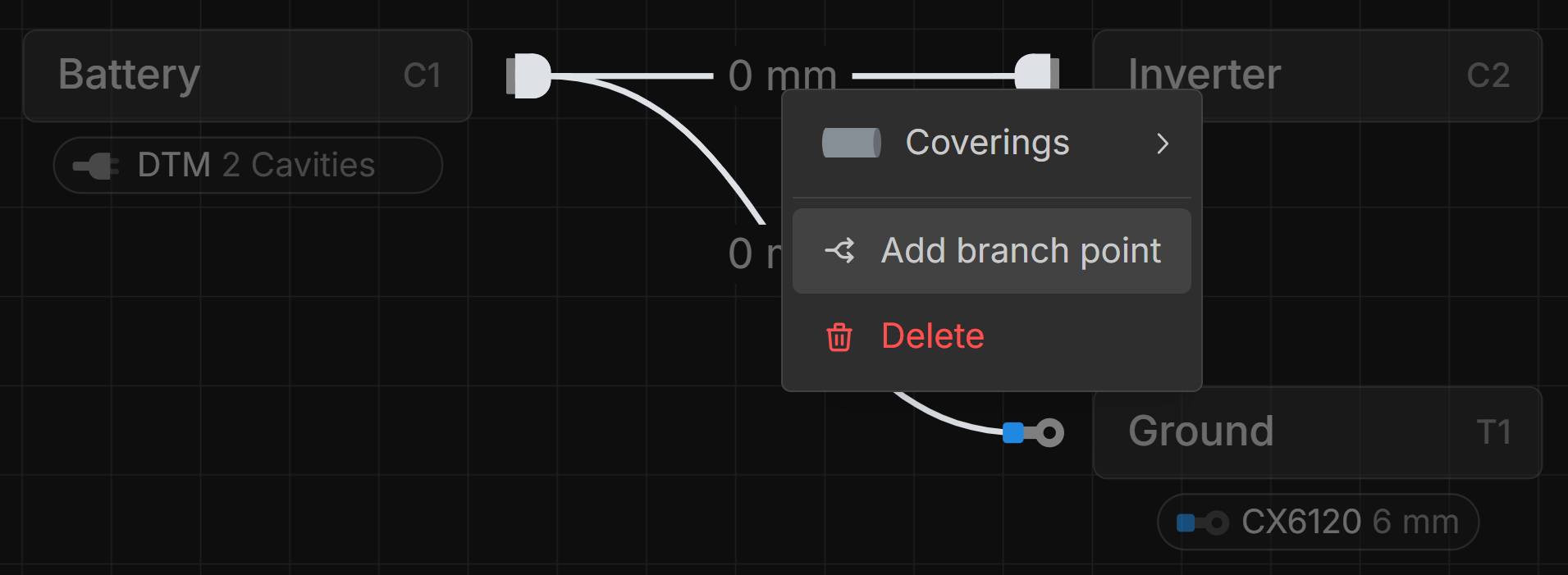 Inline components that are located within the harness—such as splices, diodes, and resistors—can also be positioned at branch points.