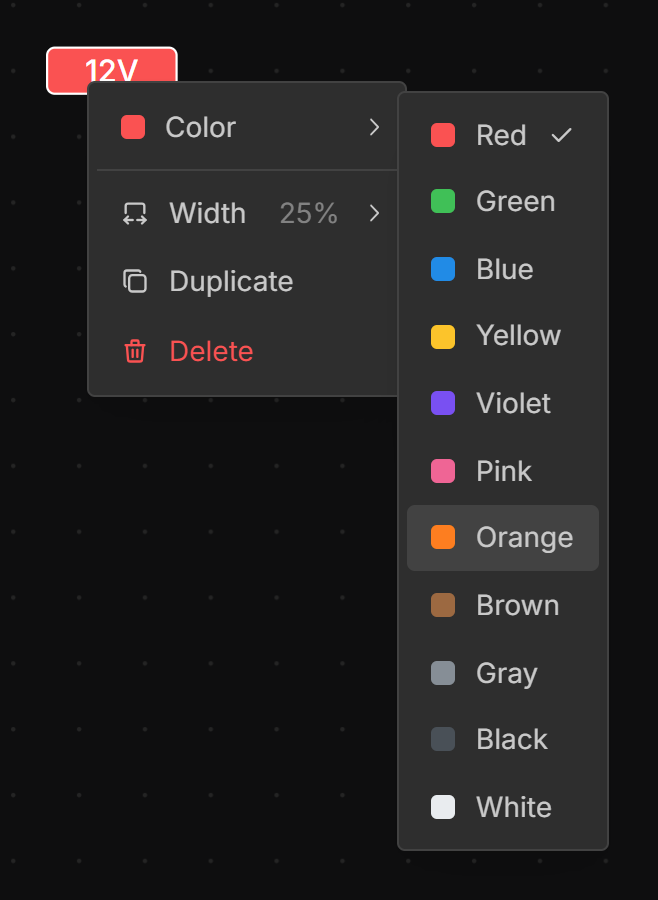 Drag from the handle on the left or right side of the Net Label to the end of a wire or cavity to assign the Net Label to that net.