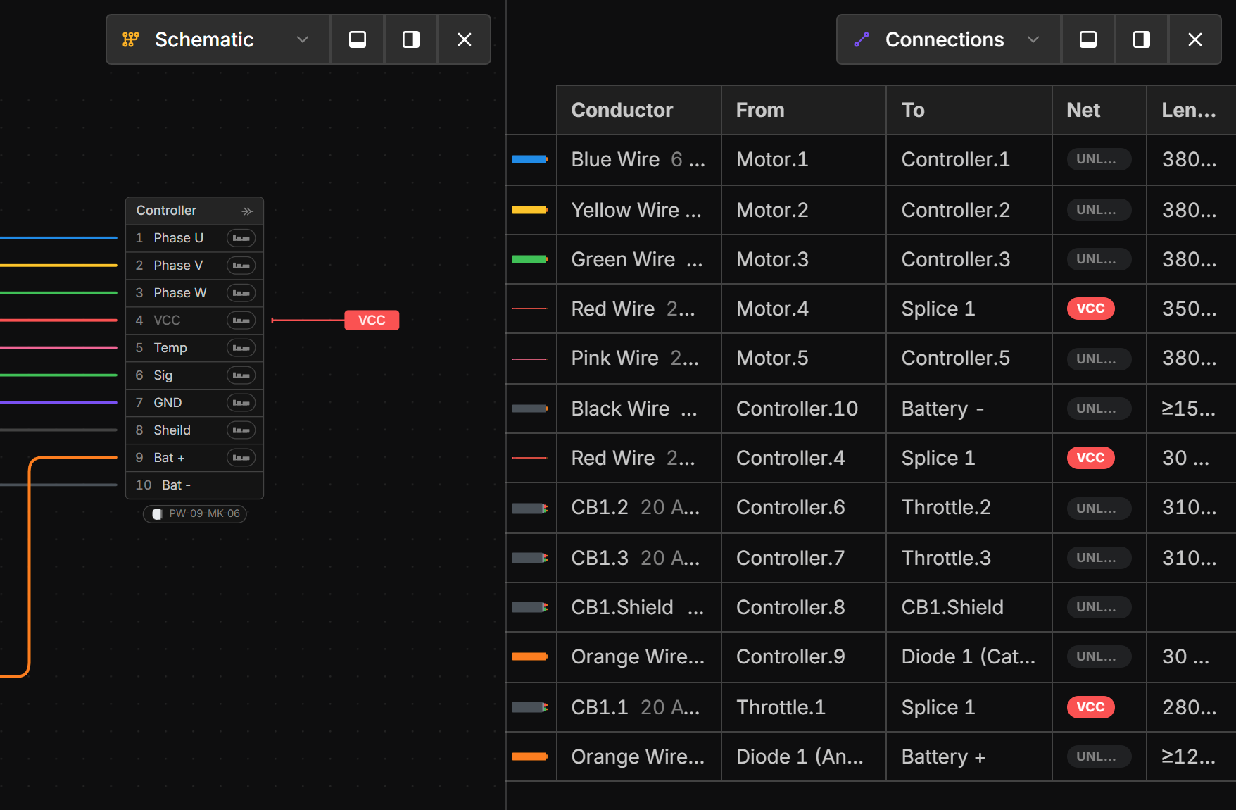 - Connections on the Connection View that are on a net with a Net Label will show the Net Label name making it easier to keep track of wires.