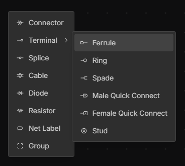 Right-click on the canvas in the Schematic or Layout view and select the terminal type from the submenu.