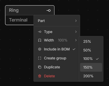 If the name or cavity labels are too long, right-click the terminal, select Width, and set the desired width.