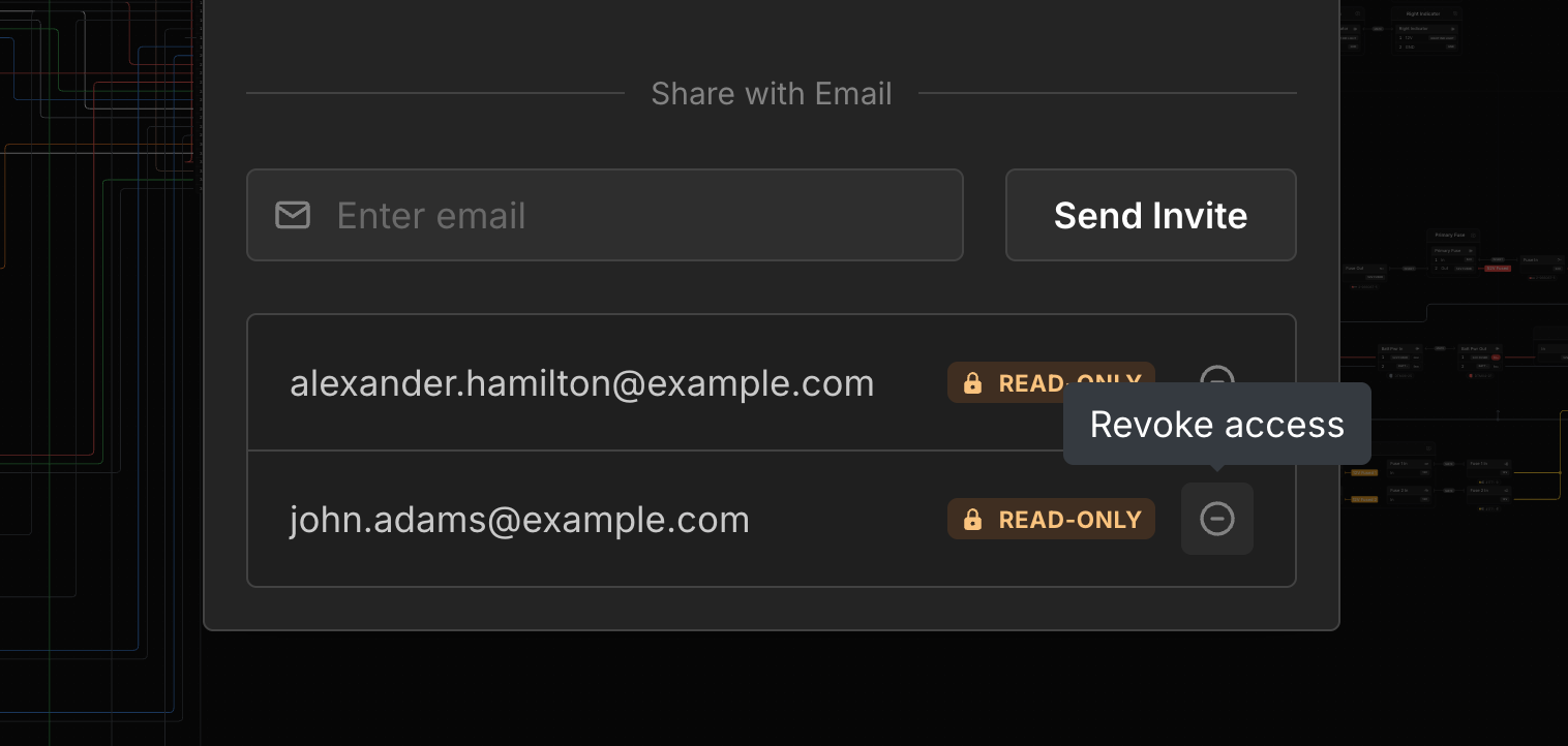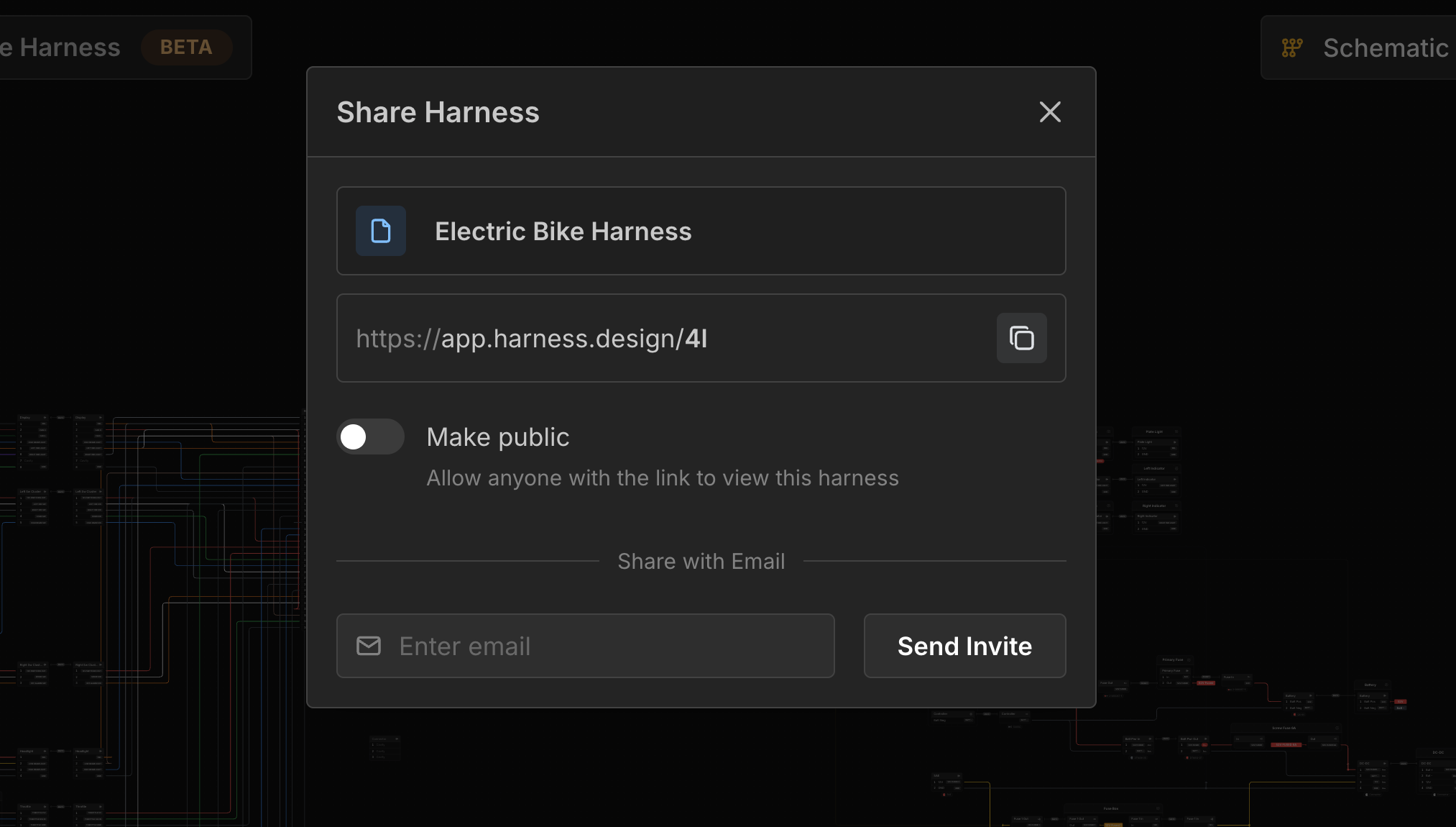 Enter an email and click Send Invite to allow the user with that email address to view your harness.