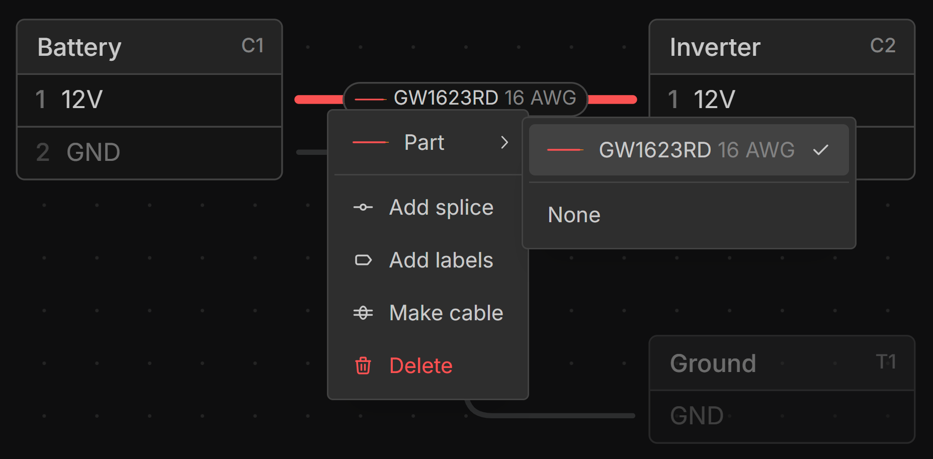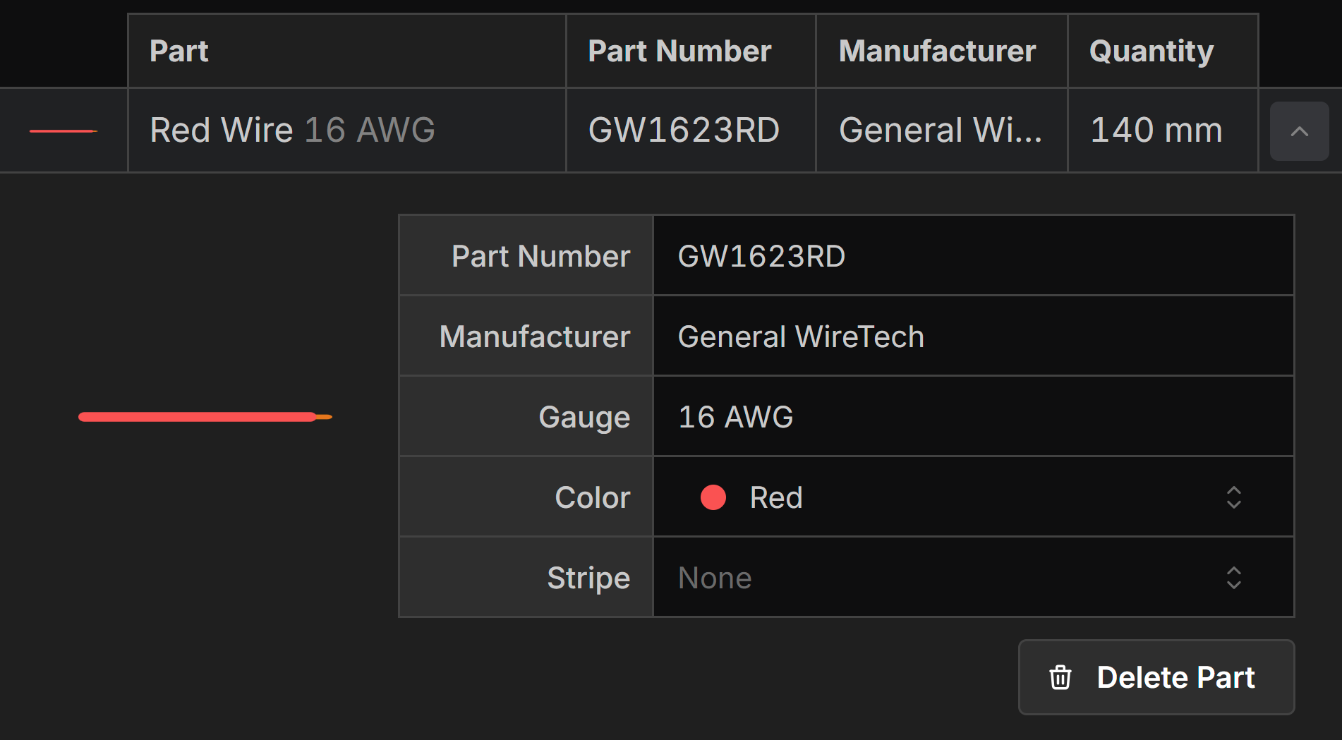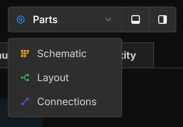 Right-click on a component in the Schematic or Layout view and select the part you want to assign. The quantities shown in the Parts view will be automatically updated as you assign parts.