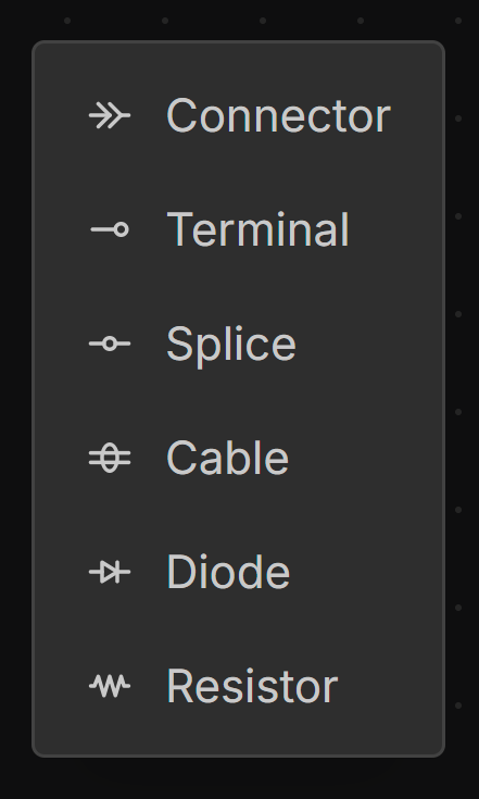 Right-click on the canvas and choose a component from the dropdown menu.