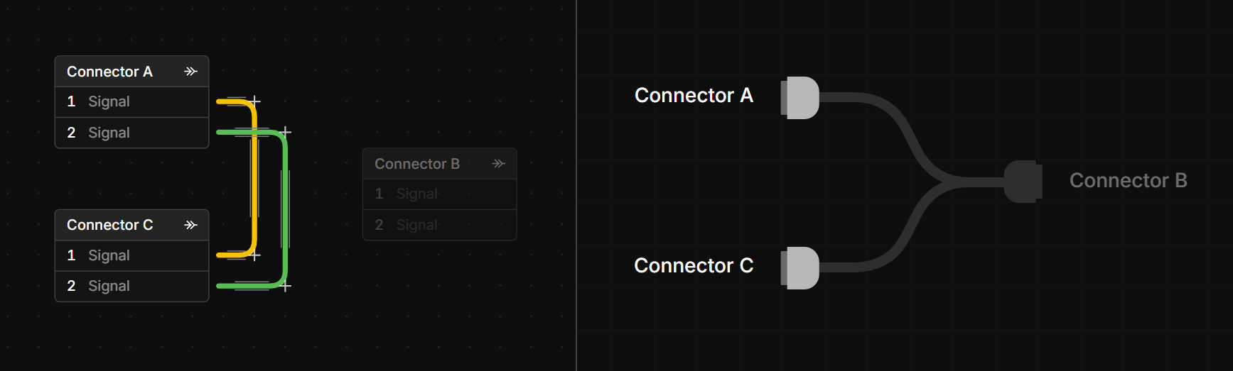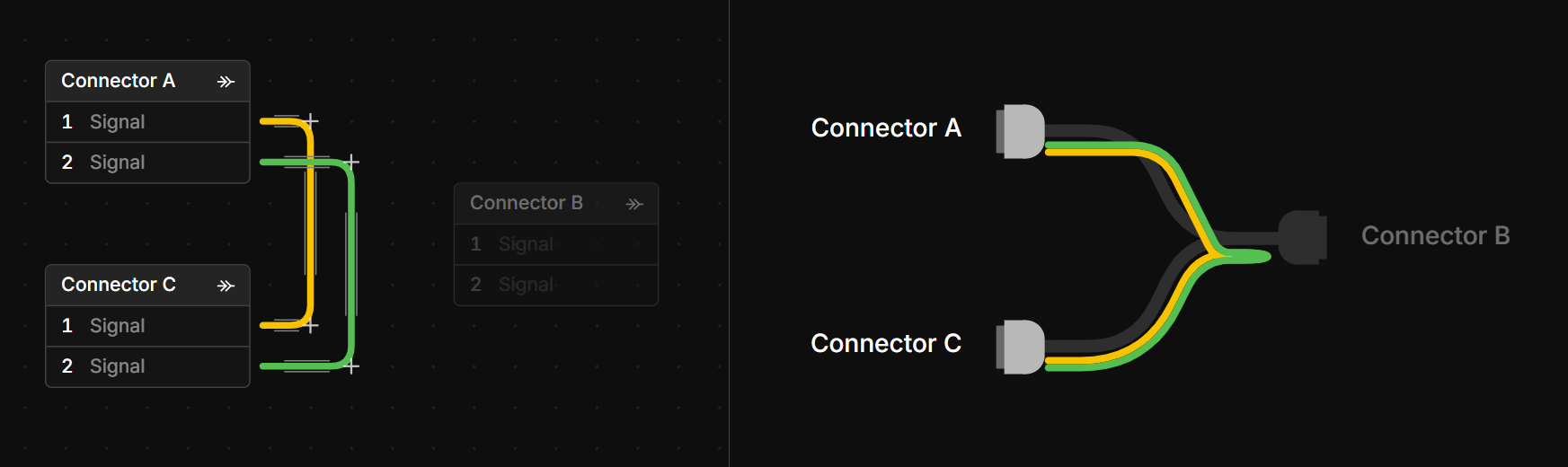 In the old system wires would not route through a Connector, a Branch Point was required. See example below: