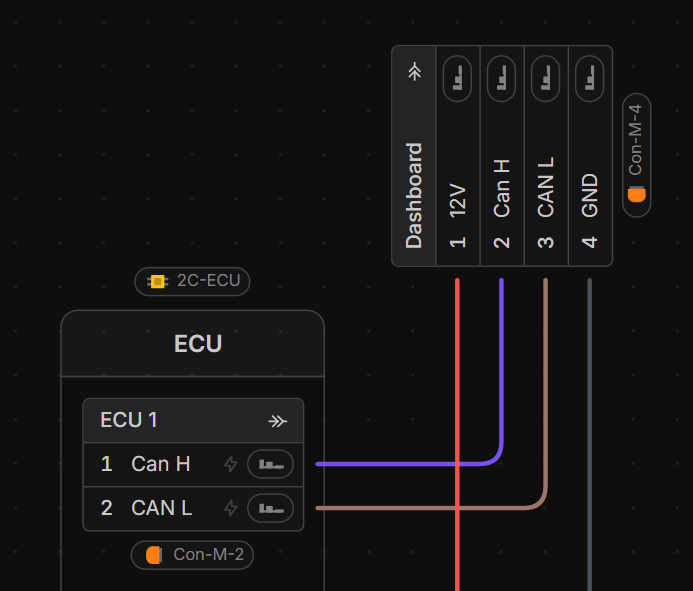 Label the electrical signals on your conductors (e.g. VCC, CAN H). Assign a signal to a cavity or terminal and it automatically propagates across the same net — no more entering the same label at every connection point. Signals replace net labels. Check out the docs for a more detailed description and walkthrough videos.